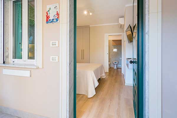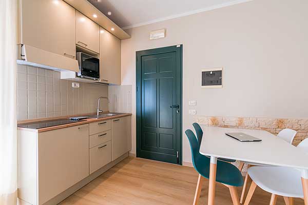 A piano terra è presente un appartamento bilocale, ad accesso facilitato per accogliere persone con difficoltà motorie e con disabilità garantendo un soggiorno accogliente e confortevole nel massimo della comodità.
