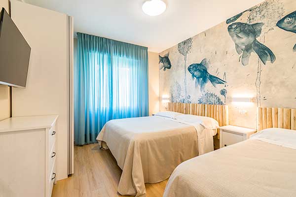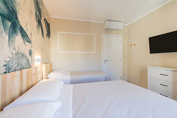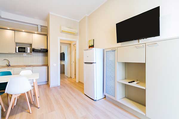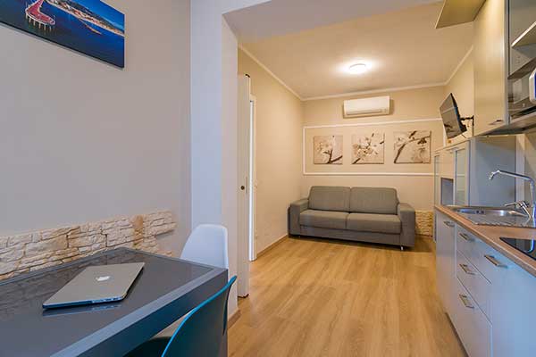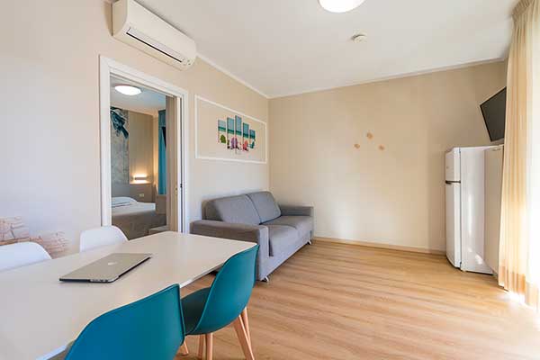 I nostri Appartamenti Bilocali, alcuni con terrazza vista mare, sono forniti di biancheria per camera, per bagno e per cucina. Il cambio della biancheria da bagno avviene a metà settimana.